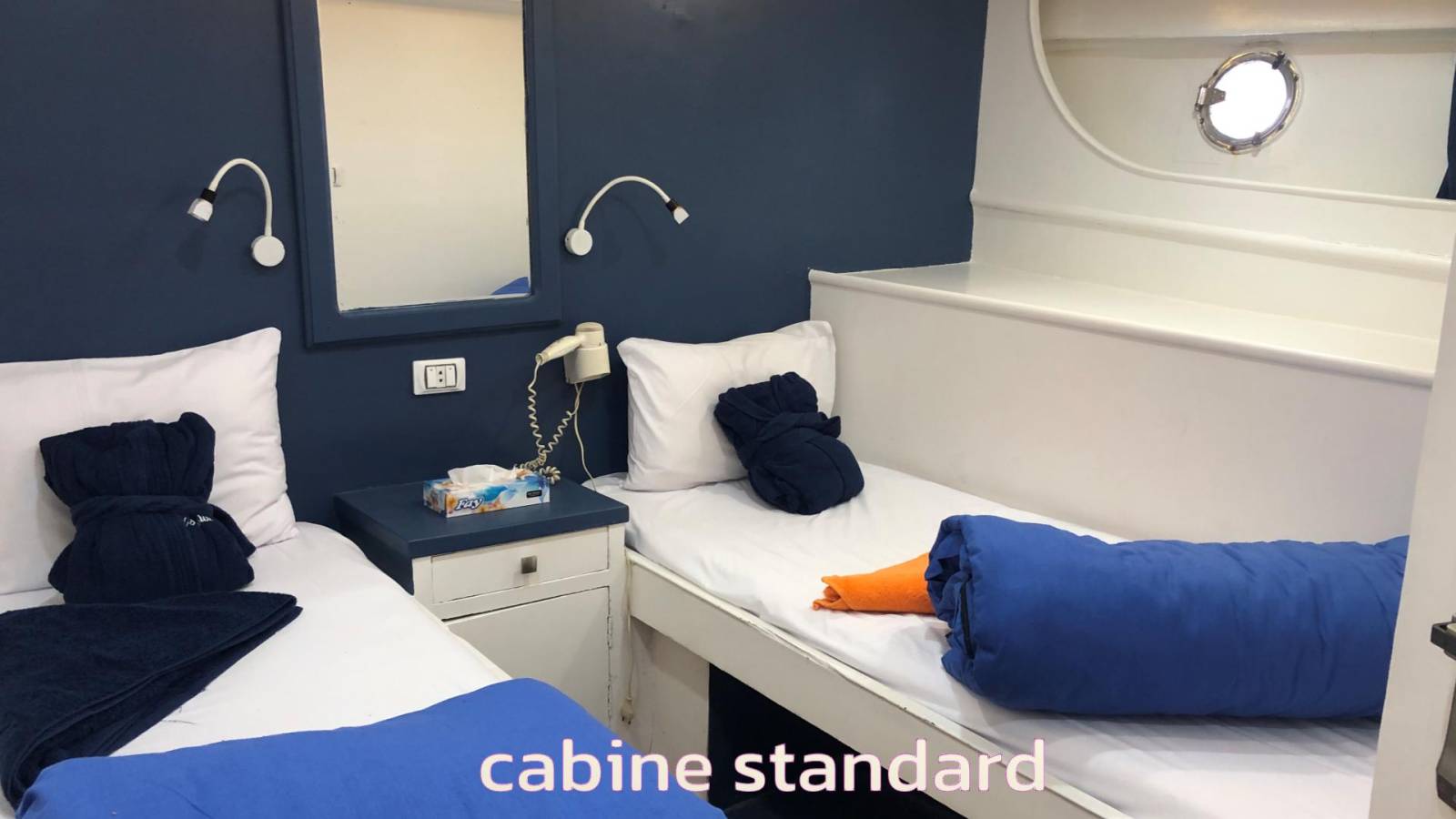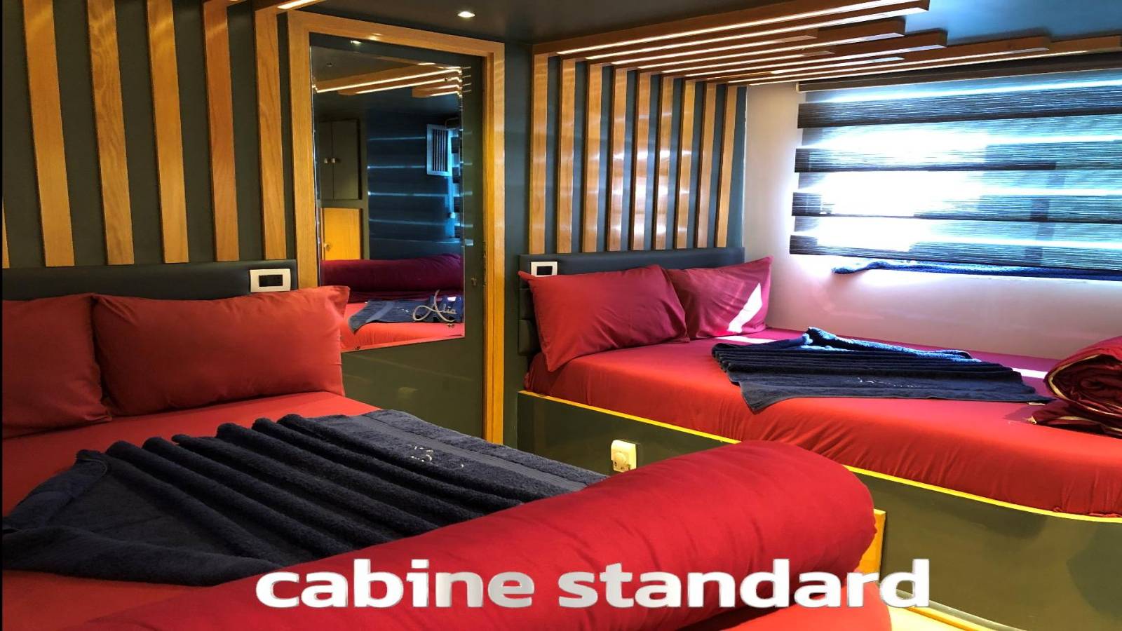 15 cabines avec lits jumeaux, lit double et lit double + lit simple (deluxe, premium et standard)