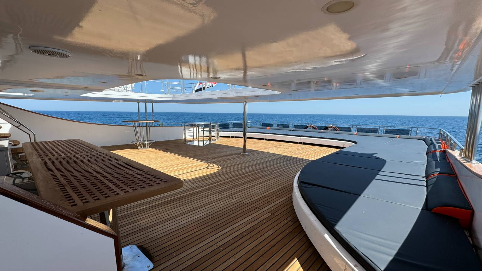 - Pont supérieur : Espace détente aménagé et ombragé avec bar