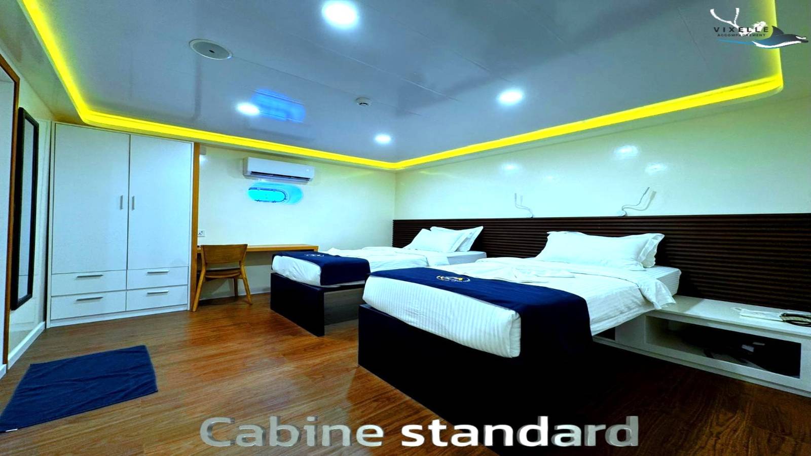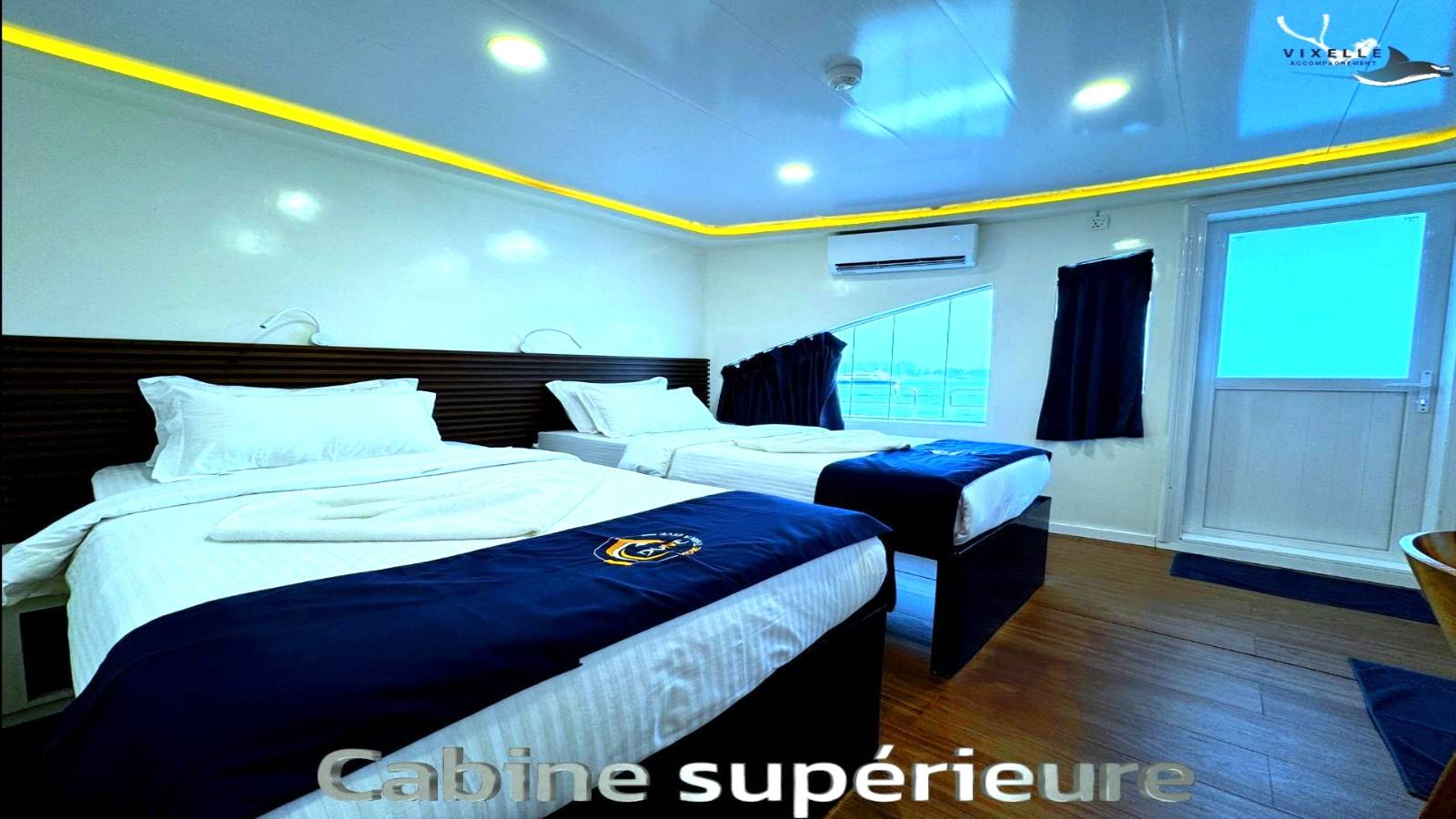 13 cabines climatisées, lits 1.40m x 2m, salles de bain privative, mini-bar