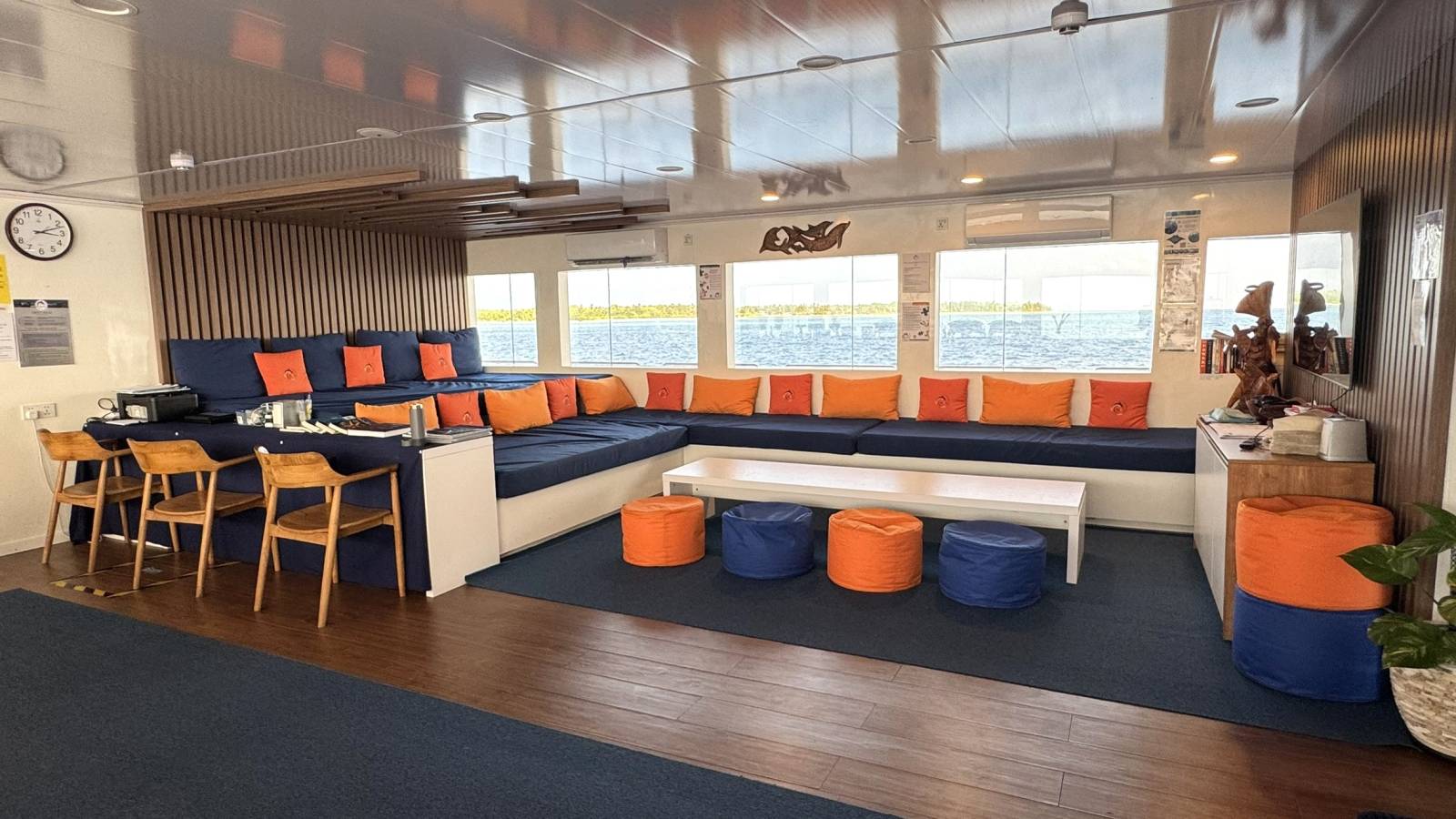 Le Wi-Fi est disponible à bord, ainsi qu'un service de massage proposé à l’étage du bateau, à l’abri du soleil, vous offrant une vue panoramique sur les bancs de sable Maldiviens.