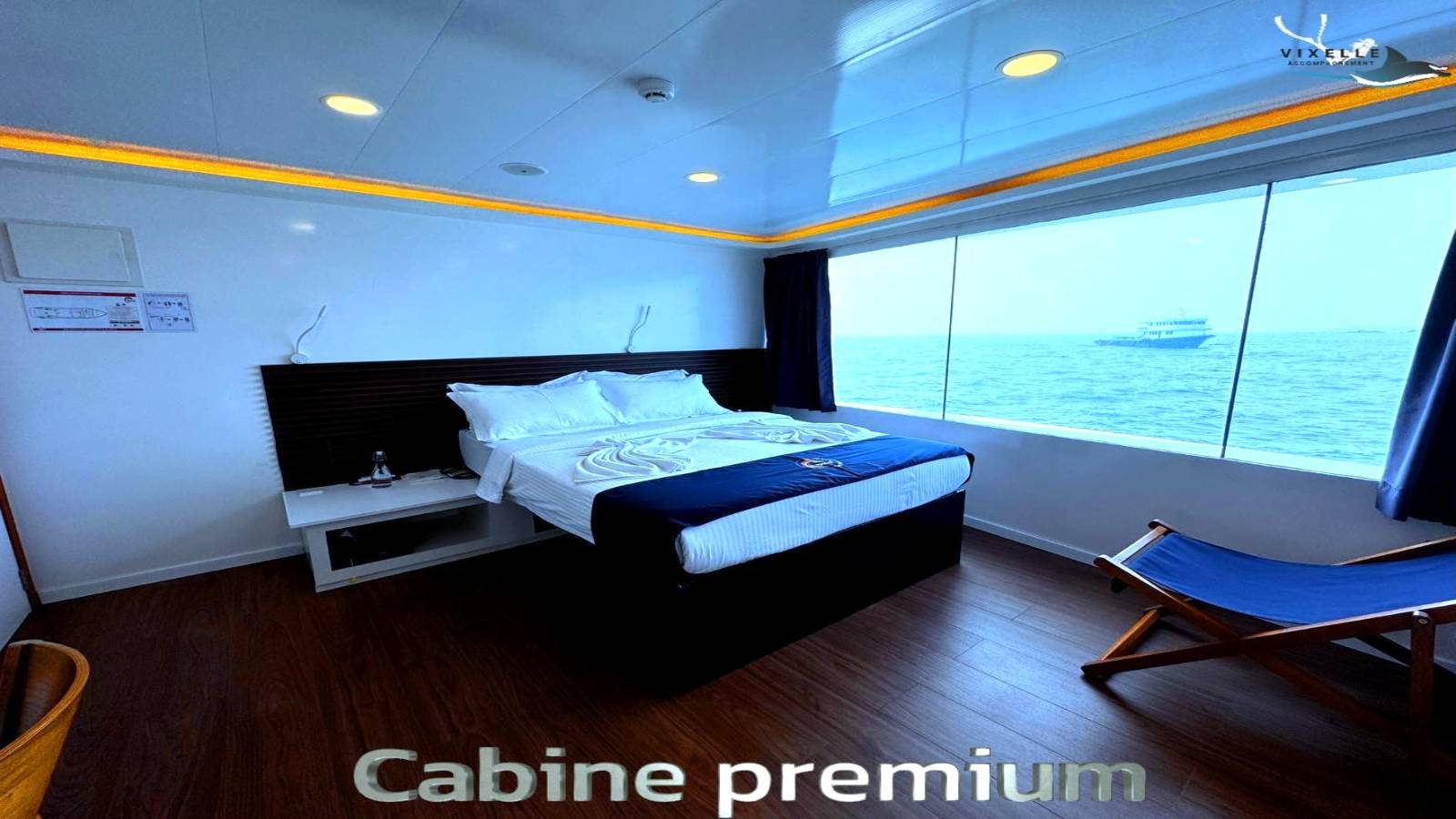 - Pont supérieur: 6 cabines vue mer et vue panoramique, zone détente