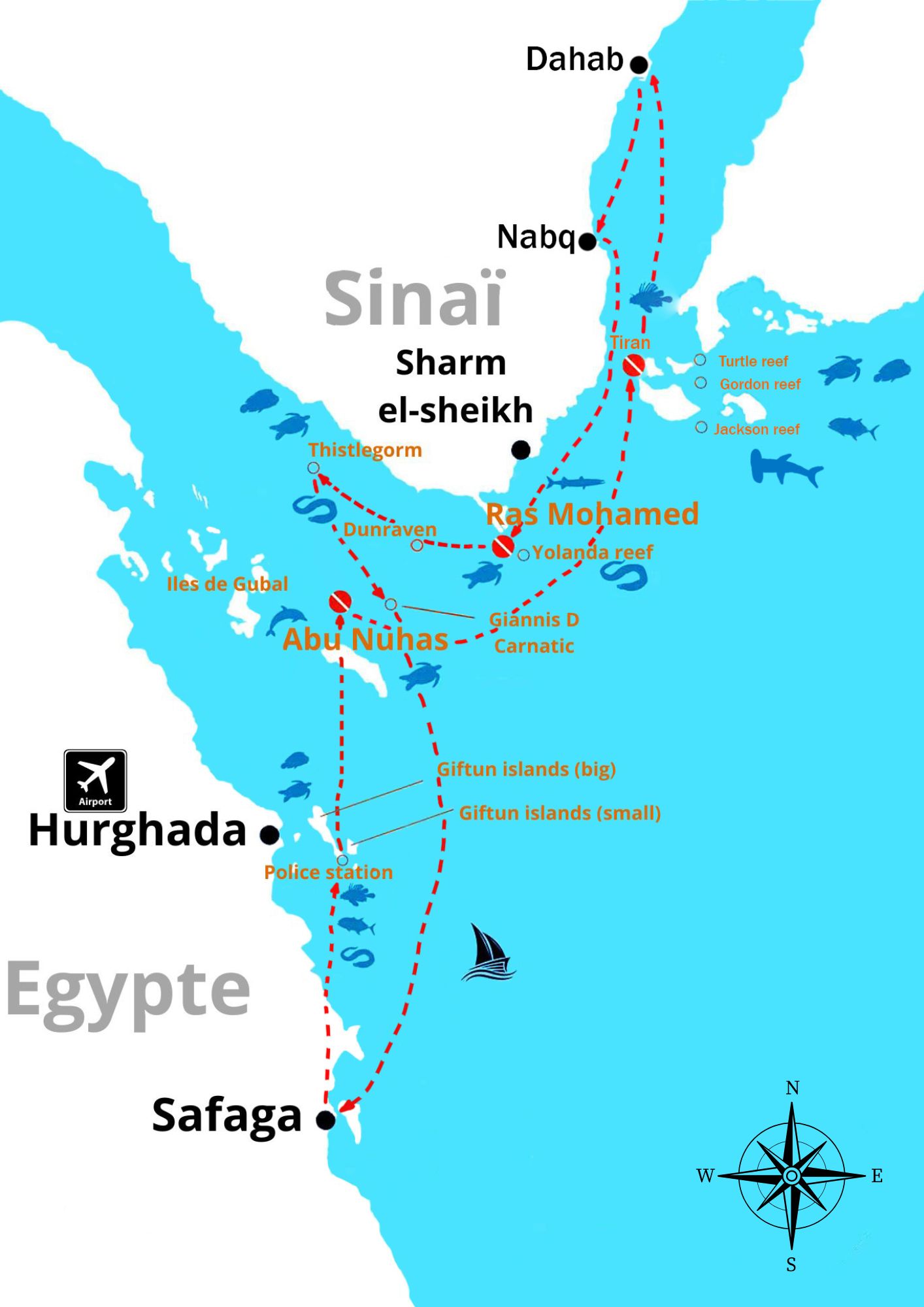 Embarquez pour une aventure inoubliable vers le Nord de Dahab Tiran, l'une des destinations de plongée les plus prestigieuses de la mer Rouge.